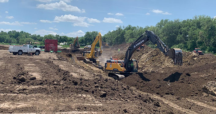In 2019, Thompson Construction completed a portion of OPPD Substation 3761 located on 150th & Schram Road. The project included over 2,500 feet of duct pipe, 11,000 feet of grounding cable, 46 pier foundations, and 6 large concrete foundation structures.