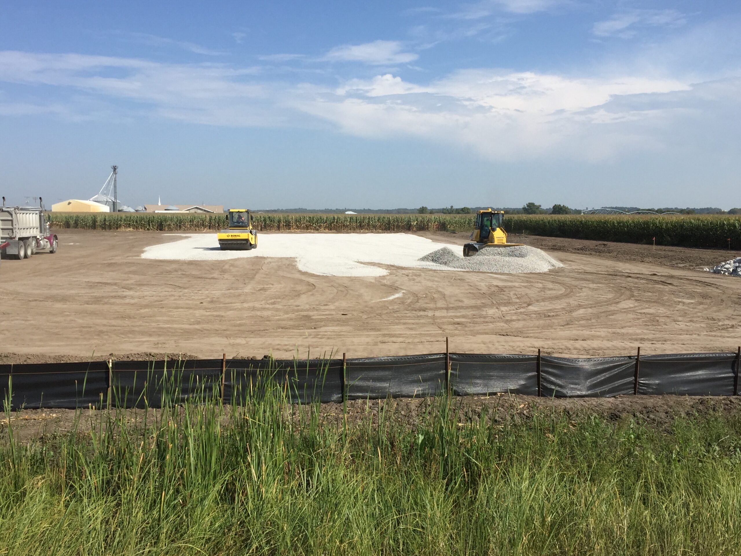 Site preparation including tree removal, earthwork, rip rap installation, finish grading, and building pads. Design and development of SWPPP as well as installation of associated erosion control measures.